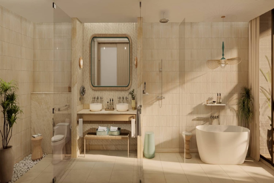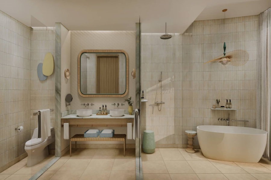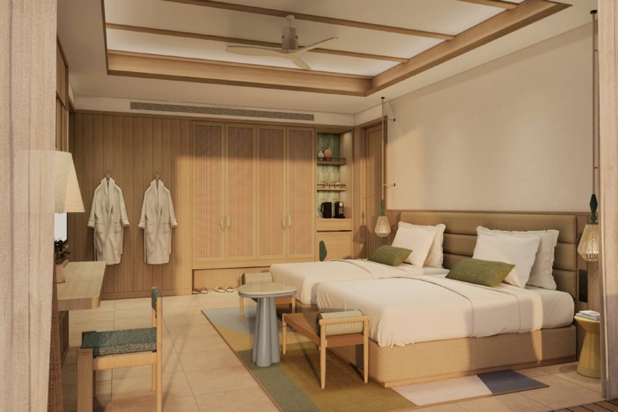 Номер уютный, со всем необходимым, чайник, капсульная кофемашина, бесплатная вода в номере в огромном количестве, банные принадлежности фирмы Amouage, утюг с гладильной доской.Большая красивая территория, внимательное обслуживание на пляже.